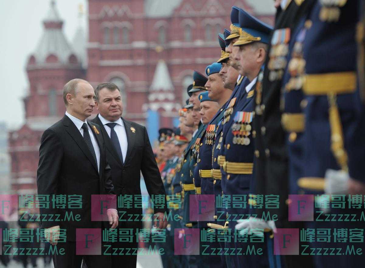 当地时间2012年5月9日,俄罗斯莫斯科,普京和国防部长谢尔久科夫检阅军队。2013年