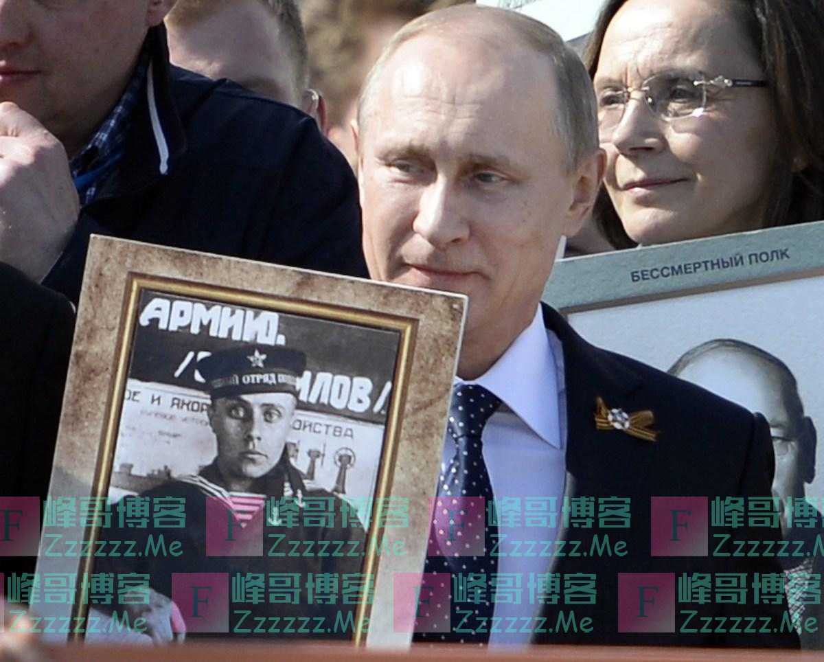 当地时间2015年5月9日,俄罗斯莫斯科,普京拿着他父亲的照片参加胜利日阅兵。2016年