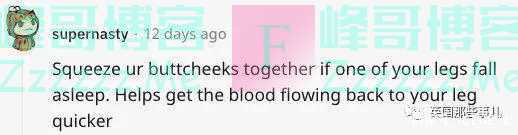 “如果你一条腿麻了,就夹紧屁股。有助于血液更快回流到你的腿。”