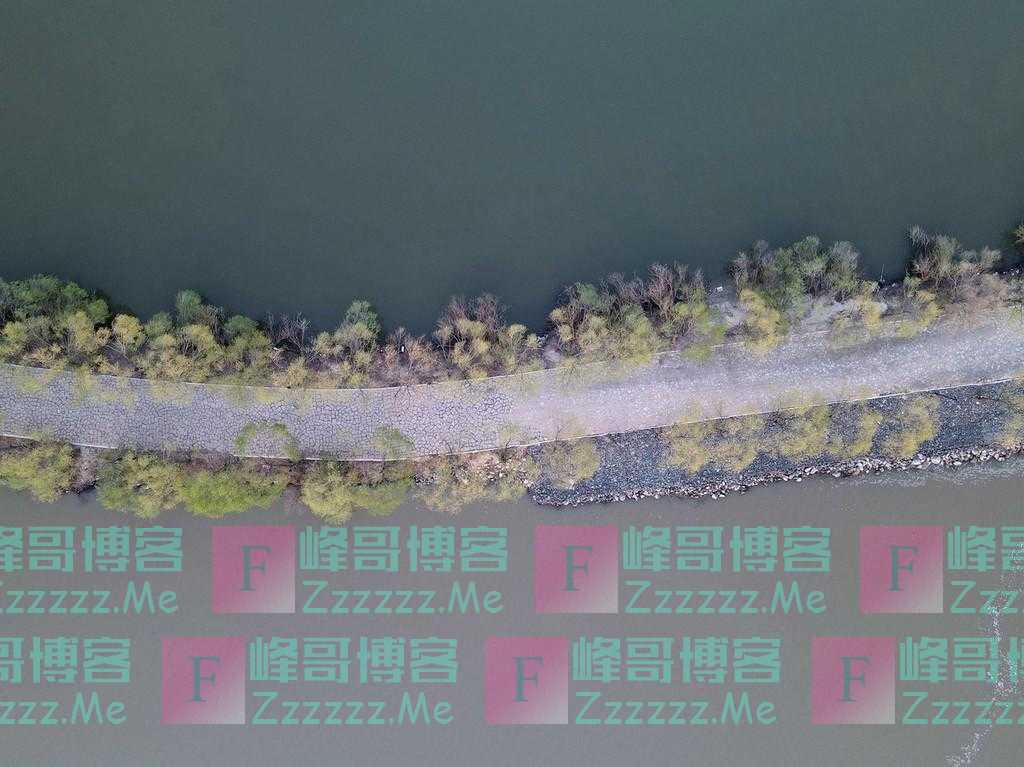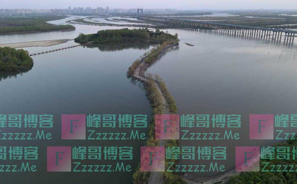 本文转自【ICPhoto】;2022年5月9日,黑龙江省哈尔滨市,松花江北岸,一处江段,堤路两侧的江水呈现出不同的颜色,一面灰绿色,一面土灰色,泾渭分明,十分有趣。