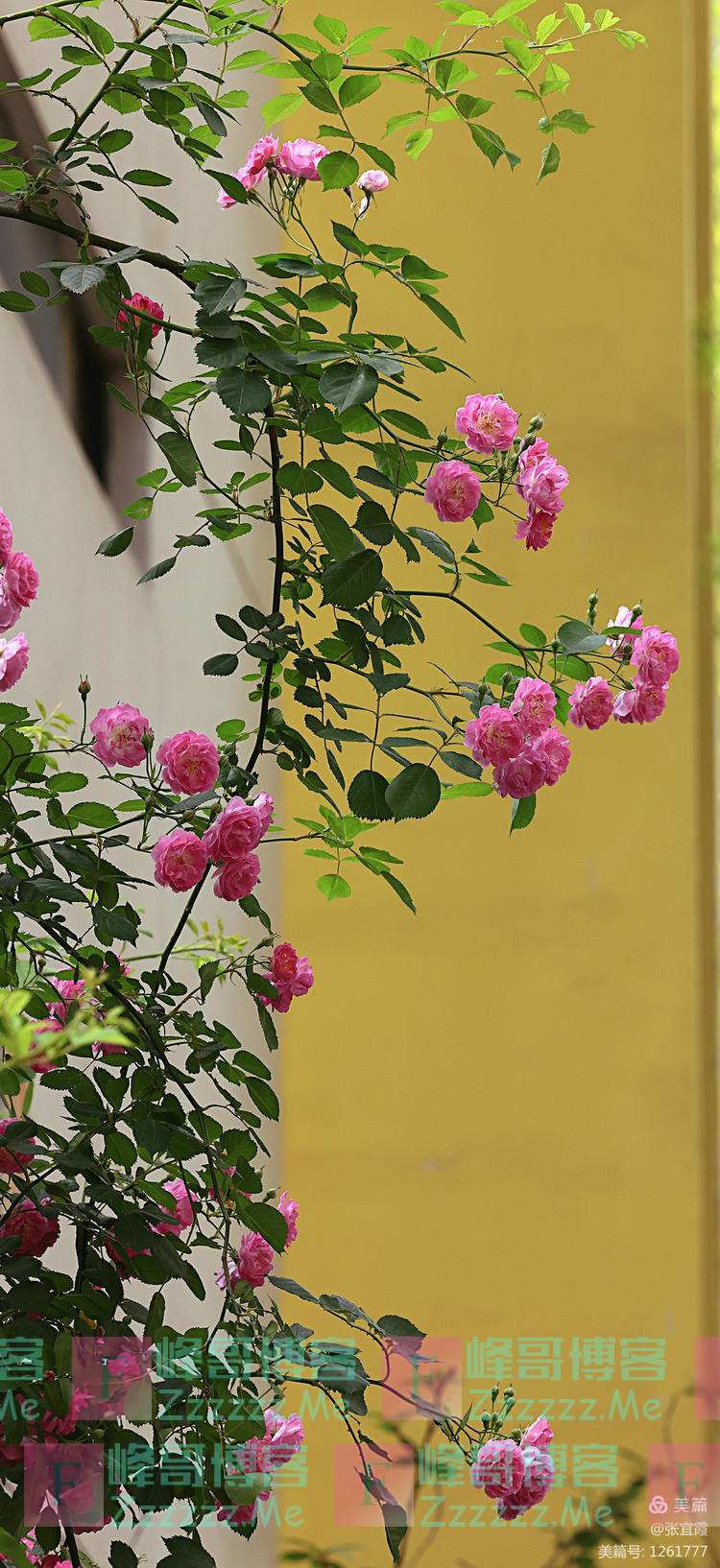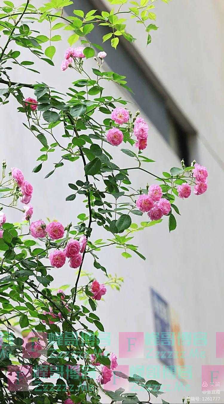 蔷薇花不像其它花那样,一朵一朵地开、一枝一桠地放,而是热热闹闹、大片大片、手拉着手、肩并着肩、相互簇拥着、相互依偎着、喊着一二一、齐刷刷地绽放。它们绽放的无拘无束、无忧无虑、豪情满怀、与众不同。它们把枝桠尽情地向上向外伸展着,恨不得把原本不宽的人行道都给占领了。院里的人们一点也不生气,高兴还来不及呢。路过花墙的时候,愉快地侧侧身、弯弯腰、举举手轻轻地挡一挡花枝,脸上洋溢着微笑,眼里闪烁着幸福的光。