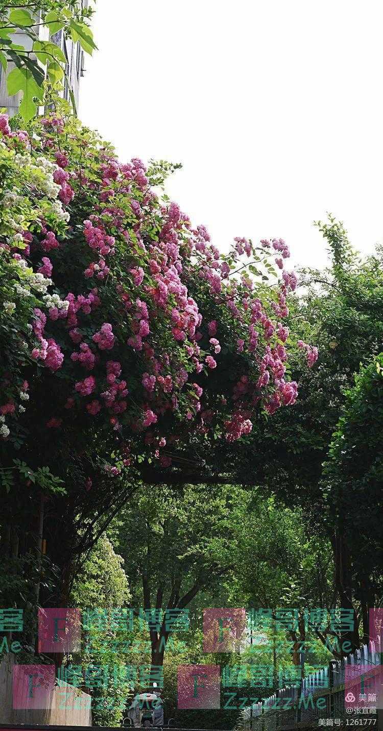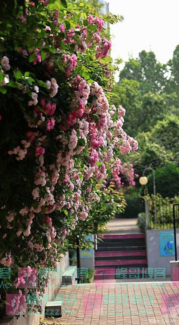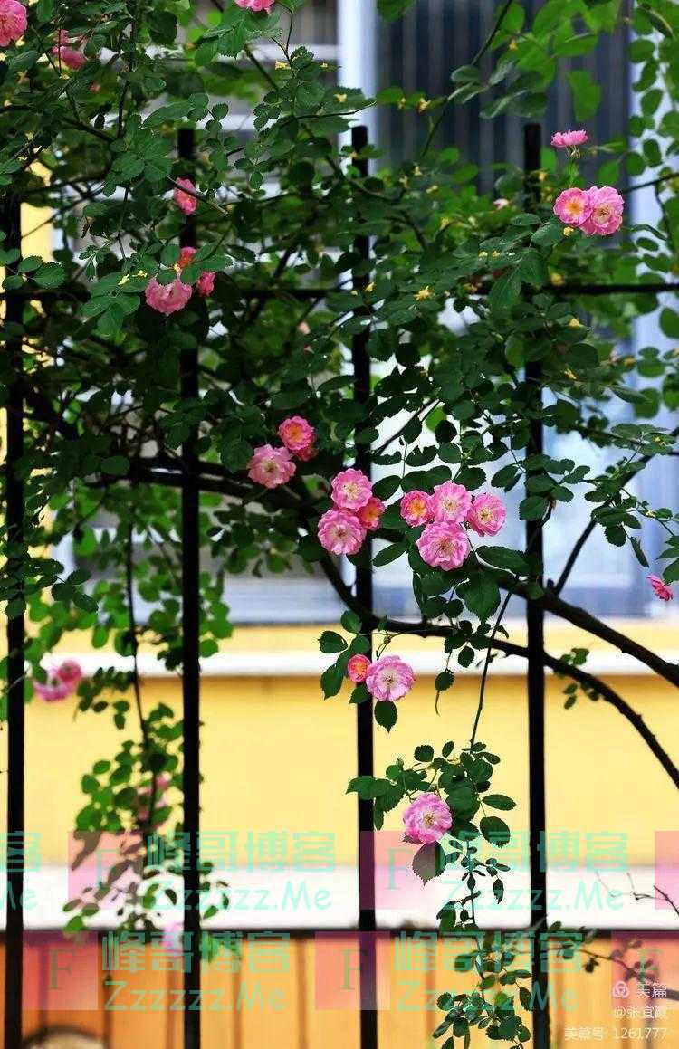 不知什么原因,今年的蔷薇花开得格外显眼、格外美丽。有的从高高的墙长垂下了一个枝桠,上面有绿叶也有花;有的花就守候在居民的窗前,为的是一开窗就能看到它;有的则三五成群,结伴同行;有的形成一个小小的花廊,为人们遮阴;有的像一个大家族,开满了一面墙……