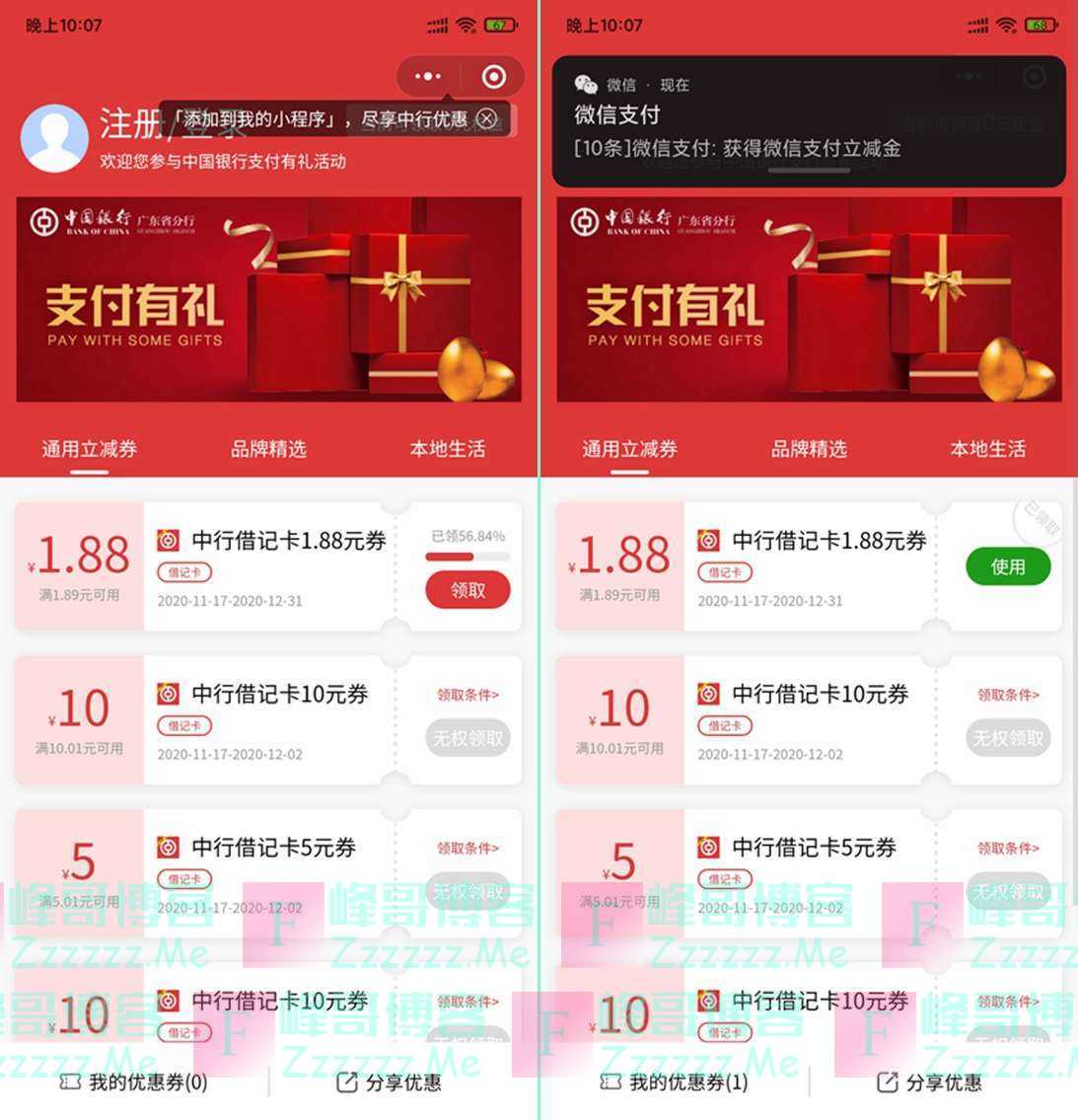 广东中国银行(除深圳以外)无门槛免费领1.88元微信借记卡立减金!活动时间:20...