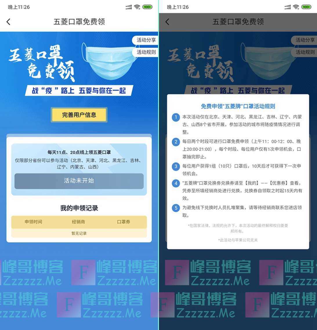 五菱免费领取10个口罩 限华北华东部分地区领取