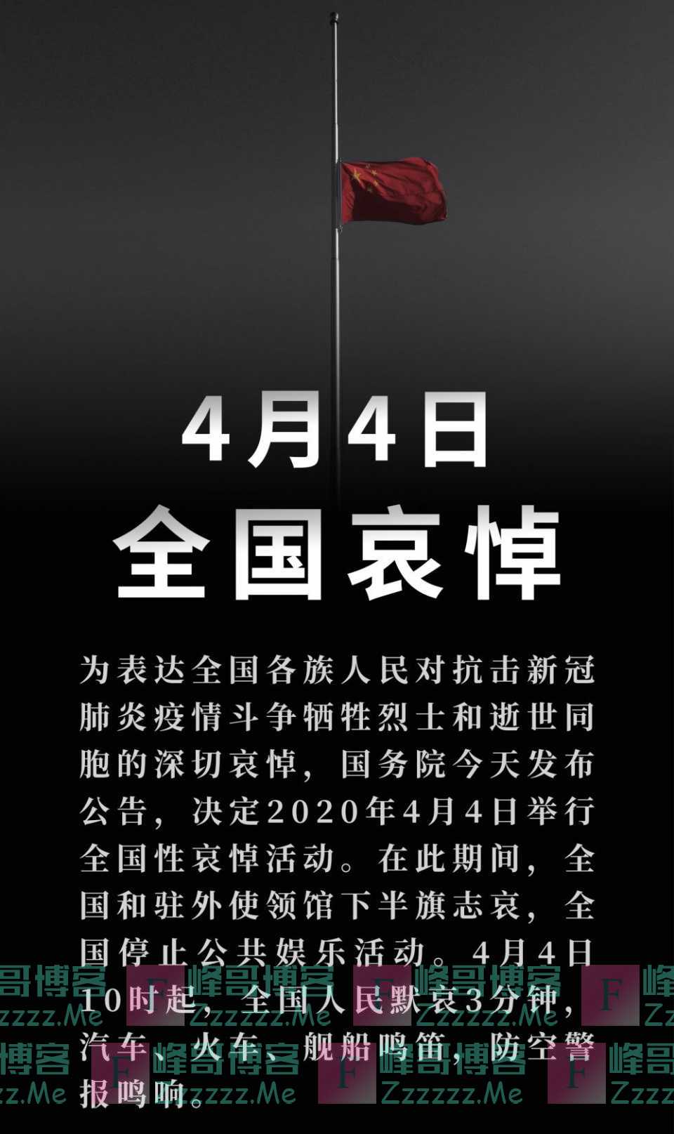 为表达全国各族人民对抗击新冠肺炎疫情斗争牺牲烈士和逝世同胞的深切哀悼,国务院今天发布公告,决定2020年4月4日举行全国...