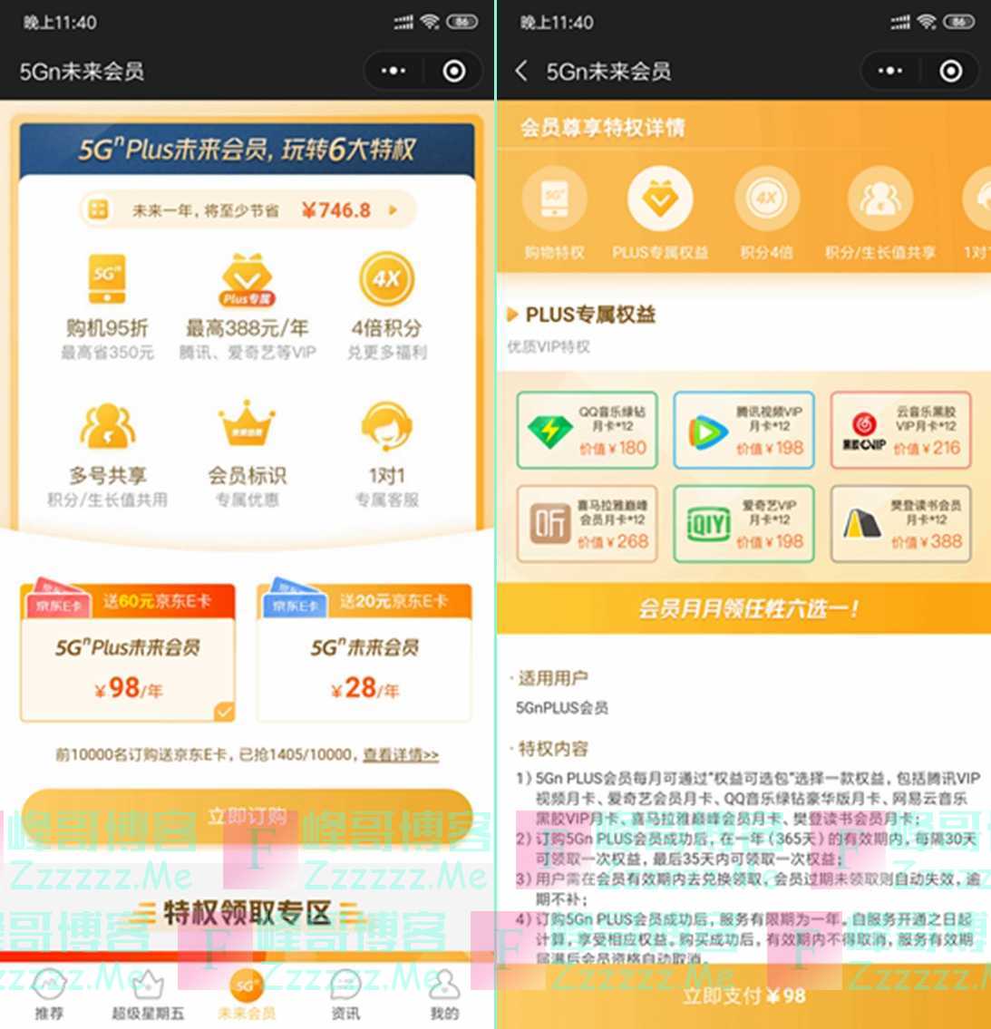 微信小程序搜索联通超级星期五后点击底部导航栏未来会员,订购98元一年的会员即可!...