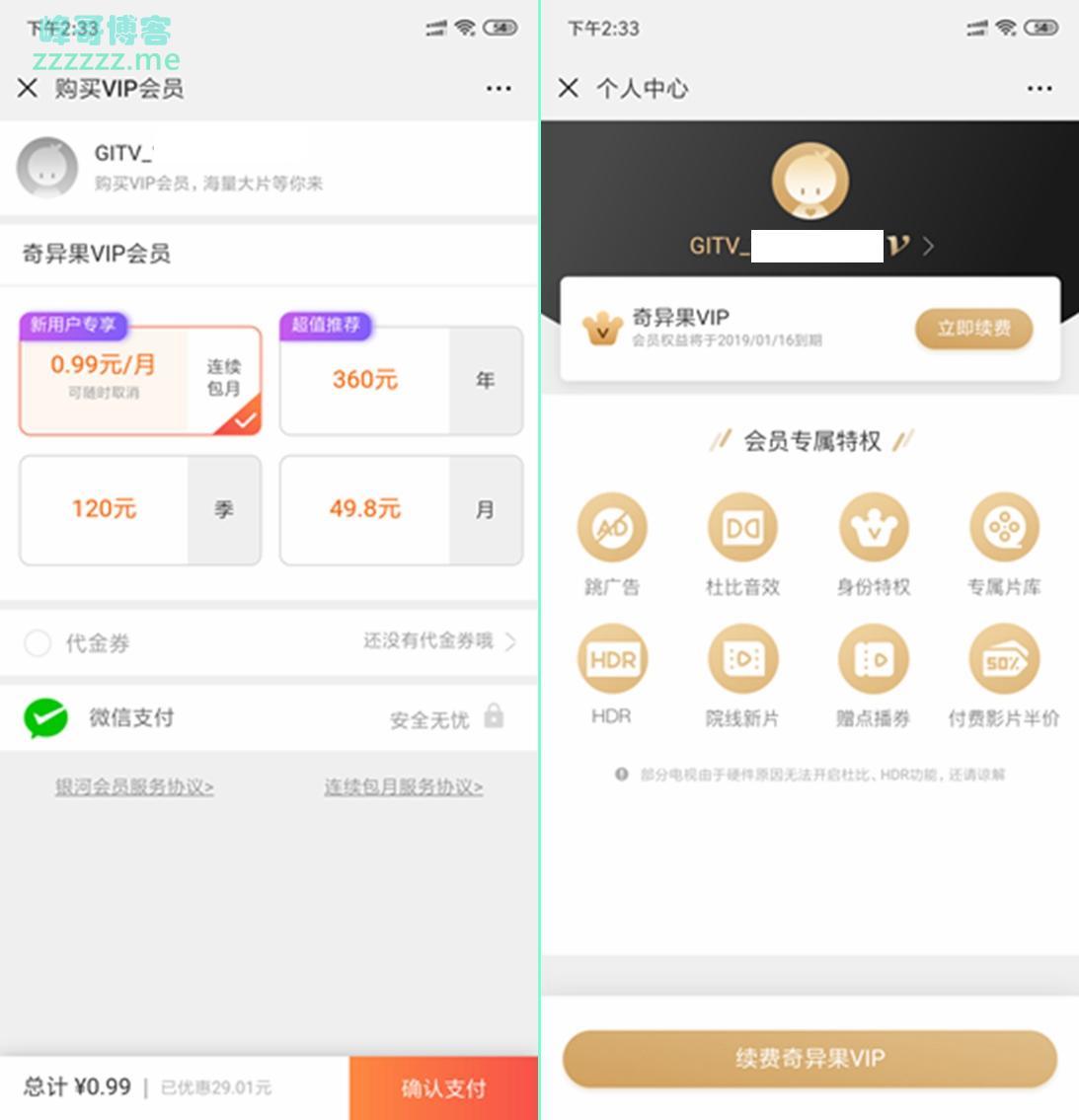 微信打开活动地址即可0.99元开通一个月奇异果会员,开通后到钱包里取消自动扣费即可!...