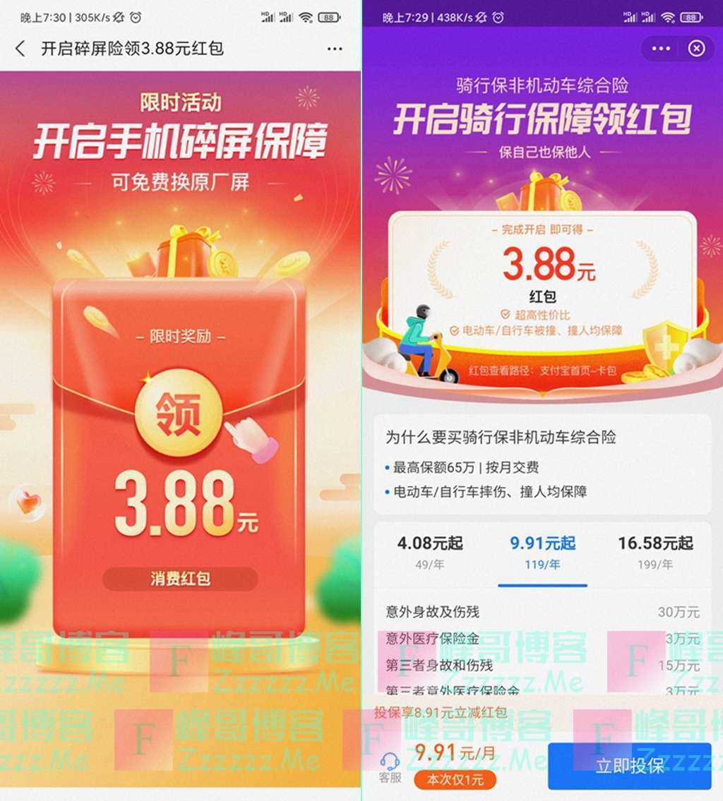 支付宝蚂蚁保险领7.76元支付宝无门槛消费红包