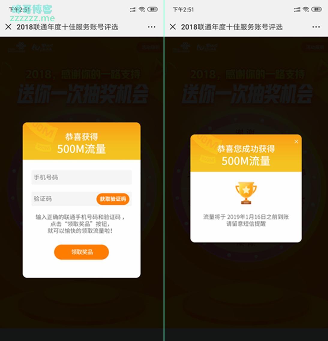 微信中国联通年度十佳服务账号评选活动 抽500M全国流量!