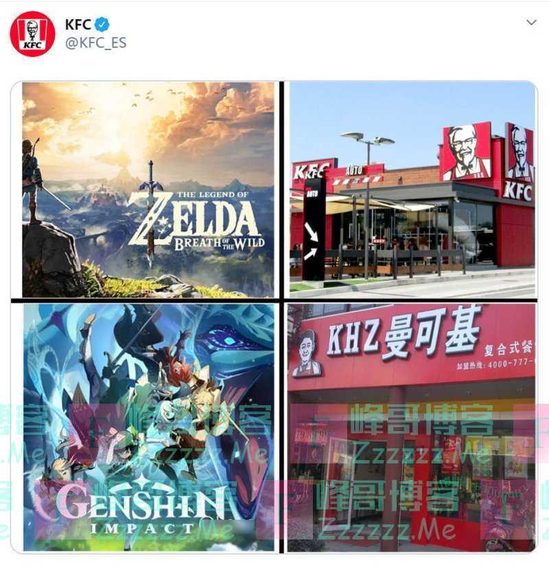 近日,知名快餐品牌肯德基在它的官方推特号发布了四张图片,分别是游戏《塞尔达传说》、肯德基的某个门店以及国产游戏《原神》和...