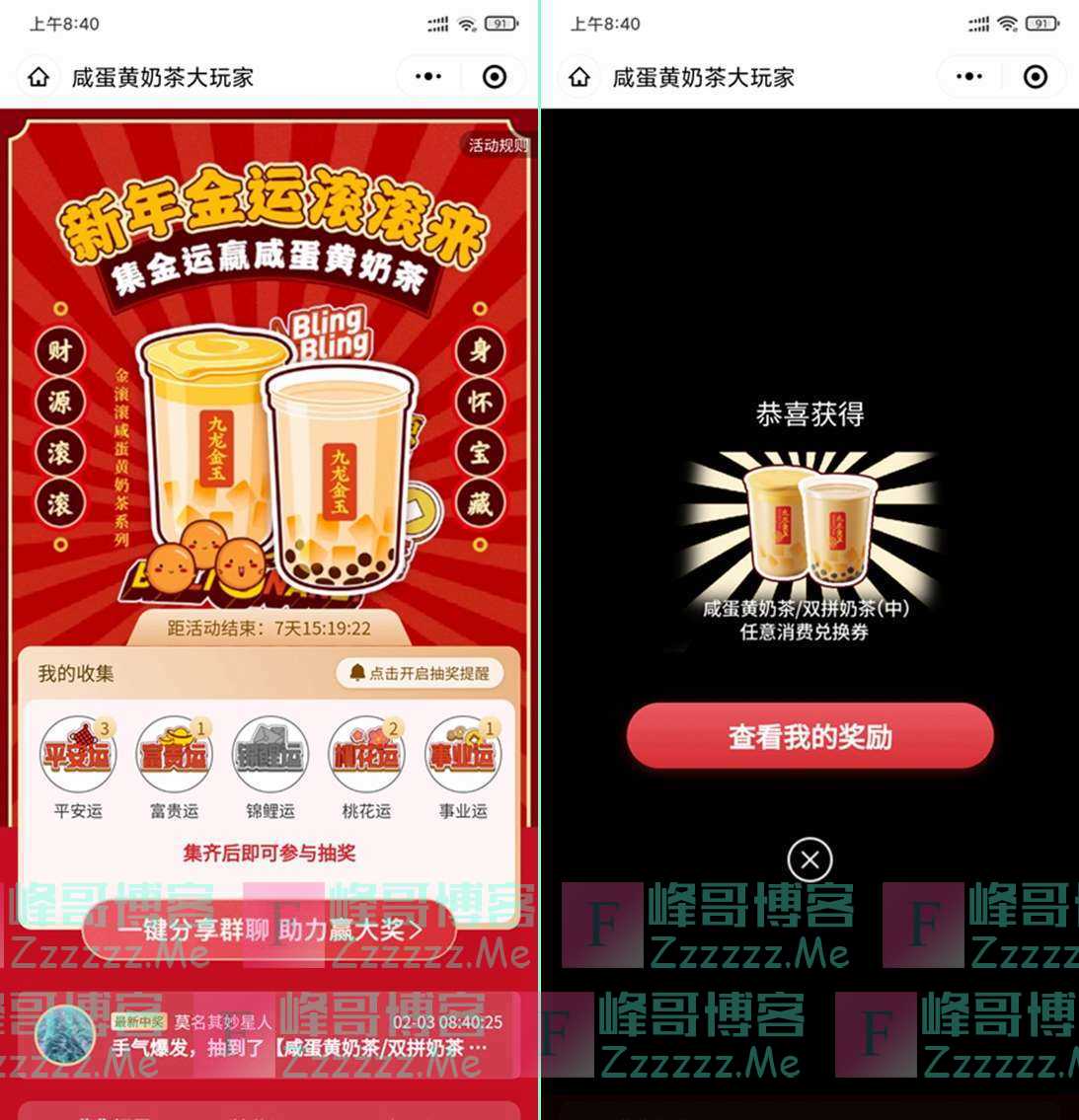 肯德基大玩家小程序新年金运滚滚来赢咸蛋黄奶茶活动,收集金运抽咸蛋黄奶茶!微信搜索...