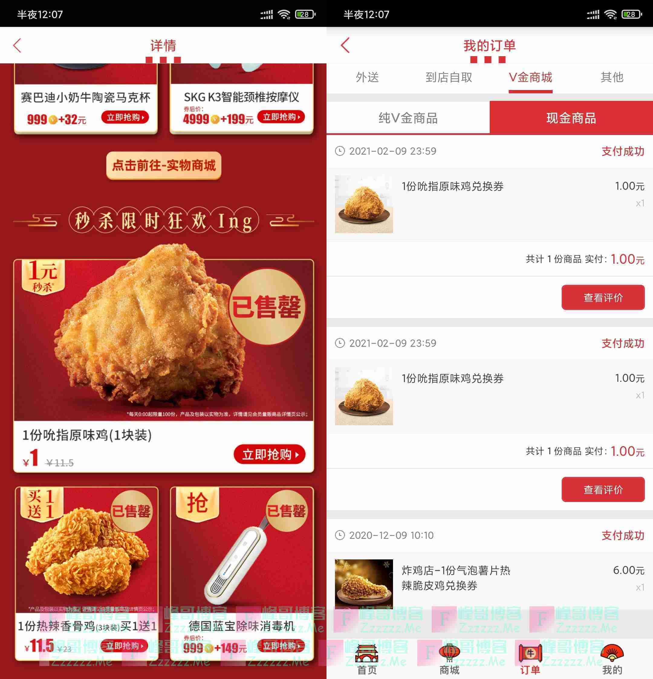 肯德基年货节活动,每天0点1元秒杀吮指原味鸡!亲测可以提交多单,只要11:59分一...