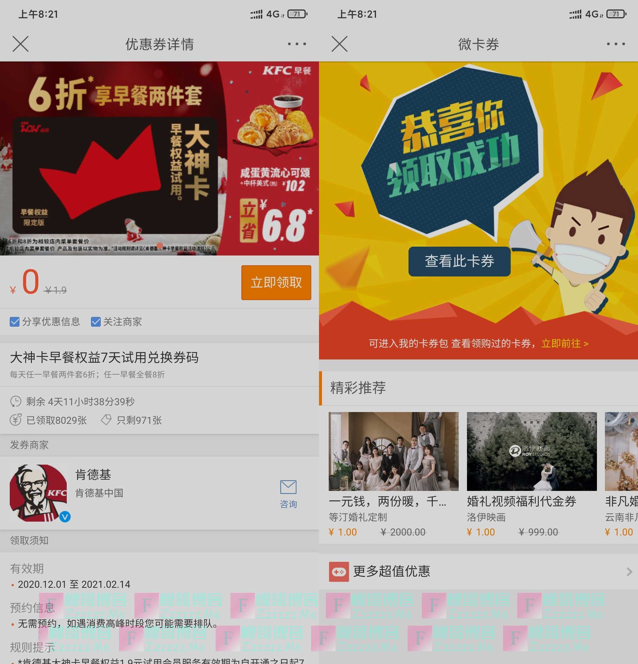 微博免费领取肯德基大神卡(体验版)七天!体验版只有早餐6折优惠,一个微博账号可以领取一次兑换码!...