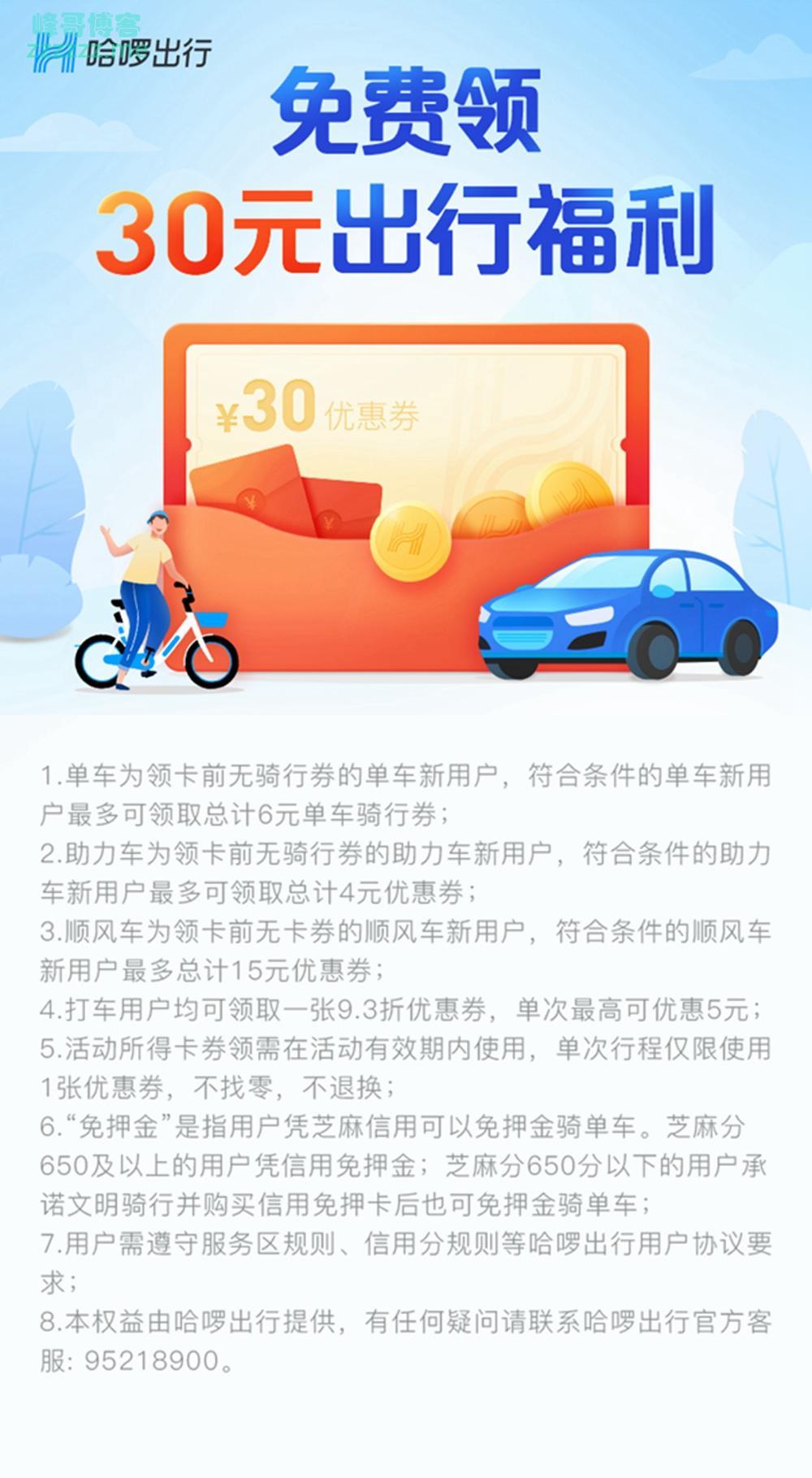 活动规则见上图,测试领到优惠券如下(新用户);顺风车抵扣券×6助力车2元抵扣券×...