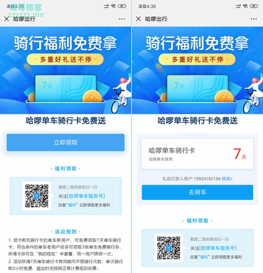 活动不限新老用户领取,新用户直接领取一张7天单车骑行卡,老用户领取3张0.5元优惠券!活动地址:h...