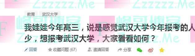 有一位家长提了一个这样的问题:我娃娃今年高三,说是感觉武汉大学今年报考的人少,想报考武汉大学,大家看看如何?湖北的高校众...