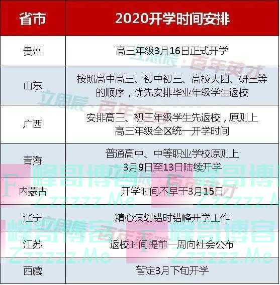 随着疫情的稳定,日前,多个省份的教育部门已开始考虑初三、高三的返校工作。贵州省已经确定高三年级学生3月16日正式开学,3...